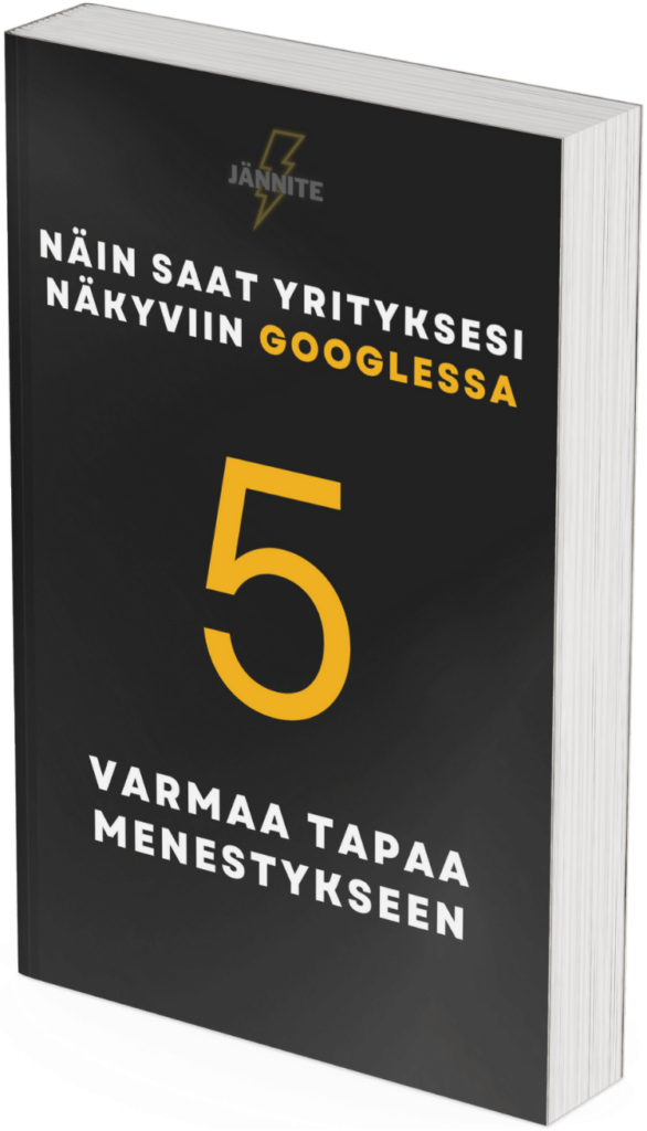Kiitos mielenkiinnostasi! Tässä lupaamamme opas, jonka avulla saat varmasti yrityksesi näkymään Googlen hakutuloksissa. Voit ladata oppaan alla olevan painikkeen kautta.